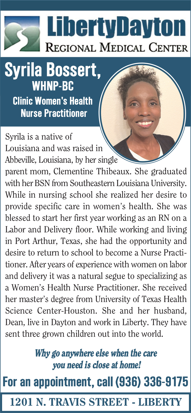 Mailing address: P.O. Box 1908, Liberty, TX 77575